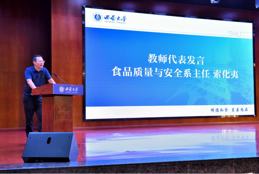 教师代表、食品质量与安全系主任索化夷则结合自身从学生到教授的成长经历,勉励学生主动适应大学节奏,积极参与课程与创新实践,努力“把文章写在大地上”,成长为成人影院
