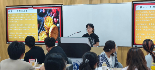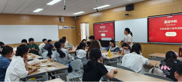 活动伊始,任老师开场致辞,活跃气氛。然后由班委为同学们讲解了中秋节的由来及月饼的发展历史。从唐代的“胡饼”到明代的“团圆饼”,月饼不仅是传统节令食品,更承载着深厚的文化内涵。同学们在聆听中感受到了中华饮食文化的源远流长,了解到食品人所需要具备的专业知识与责任担当。