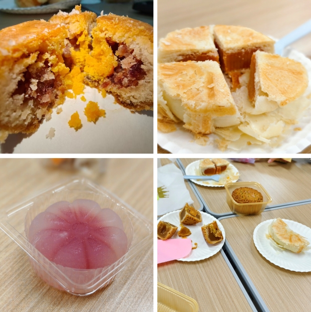 随后,活动进入月饼品鉴与科普环节。由班委为同学们详细地介绍了广式、苏式、冰皮等不同月饼的饼皮特点及制作工艺,广式月饼的糖浆皮薄馅大,苏式月饼的酥皮层次分明,冰皮月饼的软糯清凉,让同学们在味觉体验中直观感受食品工艺的差异。并结合a成人影院知识,讲解了山梨酸钾等食品添加剂的作用,用轻松幽默的语言解释了防腐剂在食品保鲜中的重要地位。同学们在品尝各类月饼的同时,也学习了其背后的科学原理,实现了“品”与“学”的结合。