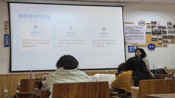 于39教创客空间开展四六级学业帮扶活动。活动特邀24级本科生杨艾萍、王璇、杨润担任主讲嘉宾,为成人影院