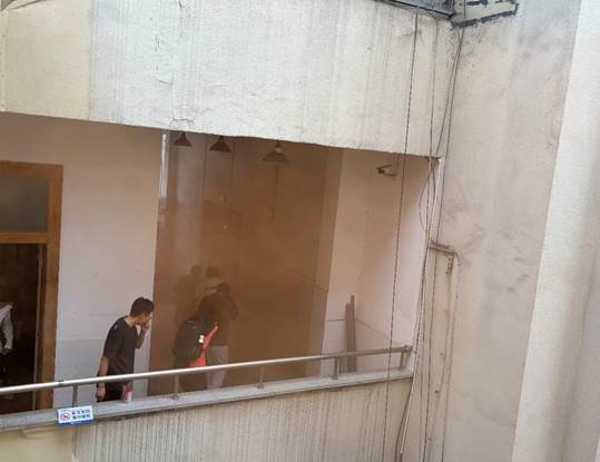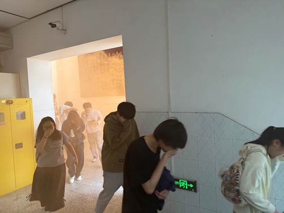随着模拟“火情”发生,烟雾弥漫整个教室及楼道。面对突如其来的“火灾”,参与演练的师生们迅速反应,在工作人员的指引下,捂住口鼻,弯腰沿着指定的安全通道有序撤离,行动迅速、配合默契,充分展现了成人影院